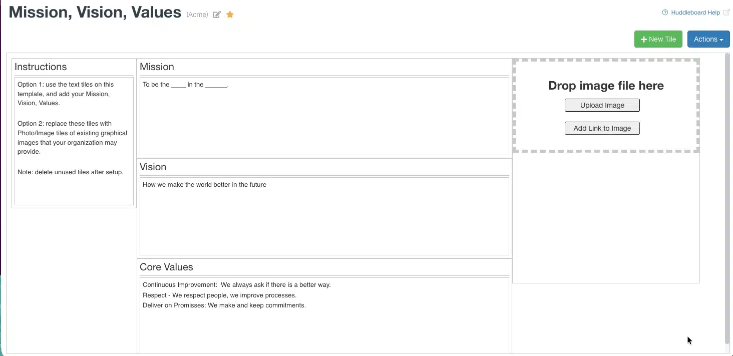 Mission Vision Values Huddle board