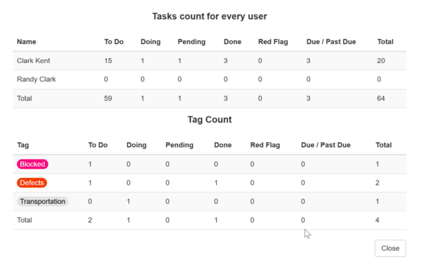- Tasks Tab: ‘Task counts for each user’ pop up now include a summary of how often each tag is used across all task groups and at the project level.