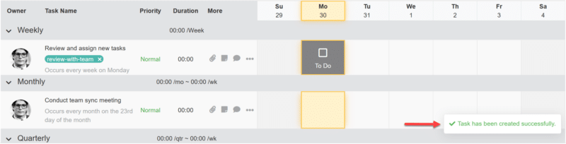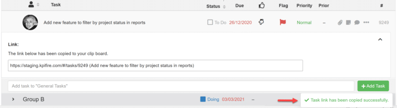 - A success toast now appears in the bottom-right corner after copying a task link of project or creating a Standard Work task and dismisses automatically.