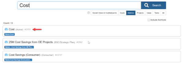 - Metrics: Quick search now shows the metric number(id) alongside the metric name in search results and in details pop up.
