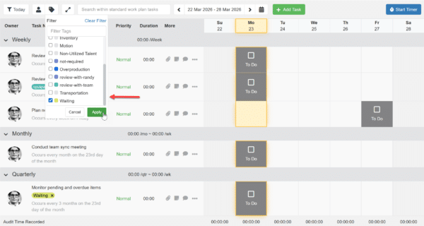 - Standard Work tasks can now be filtered by tags for both department and user views.