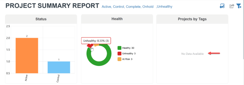 - Project Summary Reports now display a “No Data Available” message in chart tiles when there is no data.