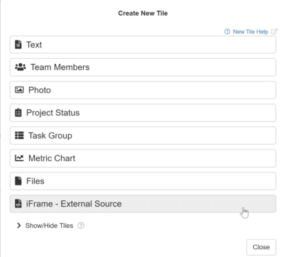 - Charter Tab: Project Charters now support iframe tiles, similar to Huddleboards.