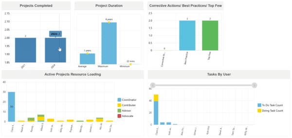 - Project Summary Report last 4 charts have been updated to improve chart performance and consistency.