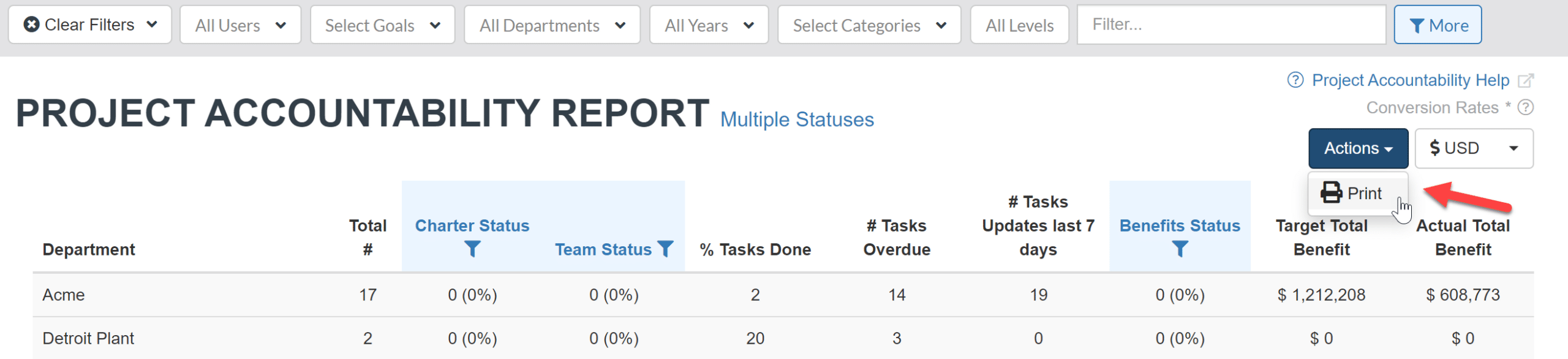 - Enhancement: Added print functionality to the Project Accountability Report.