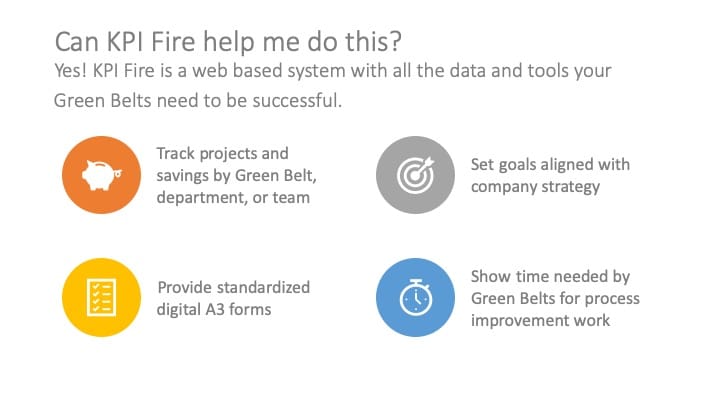 At KPI Fire we are experts in Continuous Improvement and Strategy Execution. We sell Operational Excellence Software to help companies organize the execution of their Continuous Improvement Programs and execute Strategic Projects. We share much of our expertise free of charge in the form of blogs, videos, newsletters, and other resources to add value for the community of people who care about Continuous Improvement & Strategy Execution.
