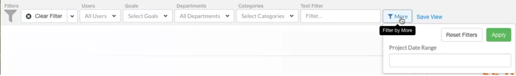 - Project Date Range: based on the Target & Actual Start and End date in the project charter.
