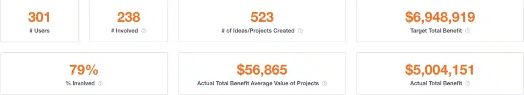 - # of Ideas / Projects Created – Total volume of improvement activity