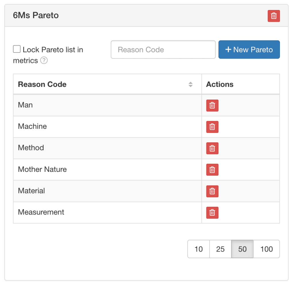 Pareto Lists are sets of predefined categories (reason codes) used for Pareto Analysis.