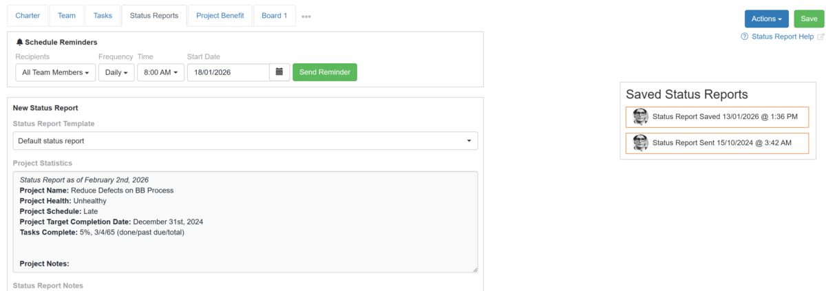 - Saved Status Reports now include sharing options like sending by email or copying a link.